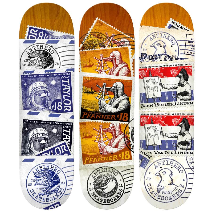 Postal Pro Series。写真左から、Grant Taylor(8.38 × 32.25)、Chris Pfanner(8.25 × 32)、Daan Van Der Linden(8.5 × 31.85)。すべて¥13,200