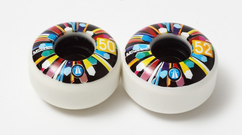 色鮮やかな発色のプリントが入ったMシリーズモデル。左から50mm、52mm。M-2(99A+Plastic Core)ともに¥6,300