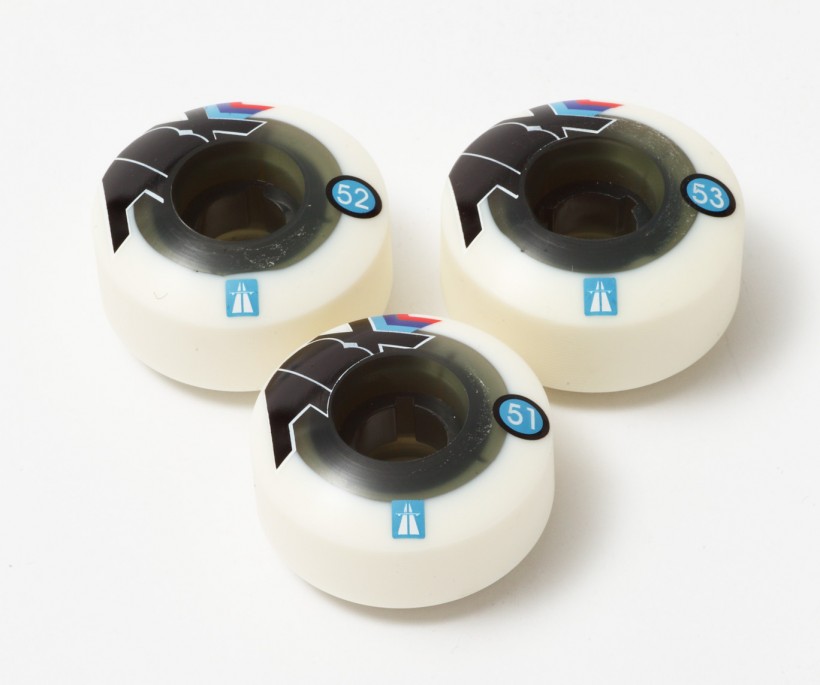 Autobahnのチームモデル。手前から時計回りに51mm、52mm、53mm。ABX Dual Duro(Outre 101A Inner Core 97A)すべて¥6,300