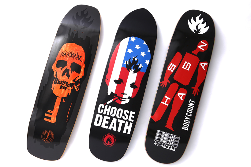 写真左から、ダレン・ナヴァレットの限定モデルSkeleton Key(9×32.75)、Choose Death(8.62×32.5)、オマー・ハッサン(8.62×32.38)。