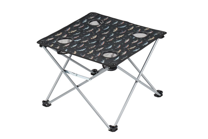 魚の柄が特徴的な折りたたみ式のキャンプテーブルはドリンクホルダー付き。Basel Table ¥5,184
