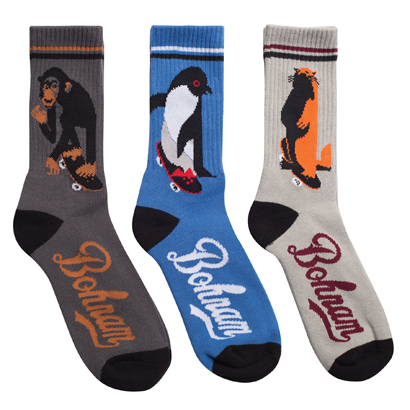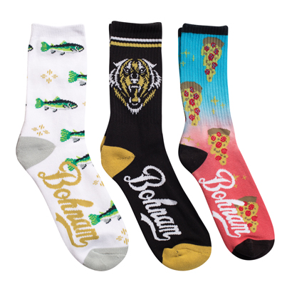 スケートに乗る動物たちやピザなどなど、遊び心に溢れたソックスのラインナップが魅力的。すべて¥2,160