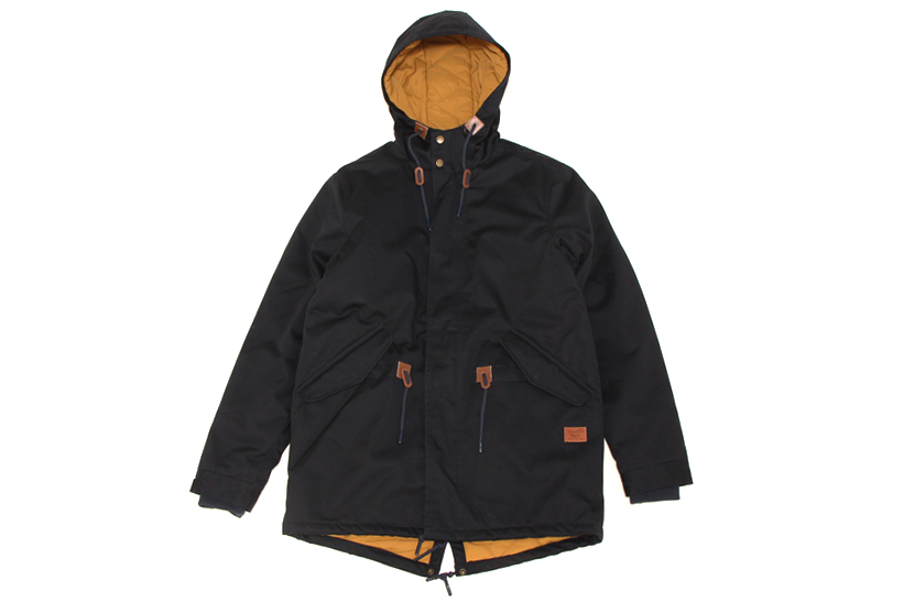 フィッシュテールシルエットのフード付きコート。撥水加工を施した風雨に強い1枚。Monte Jacket 各色ともに¥29,160