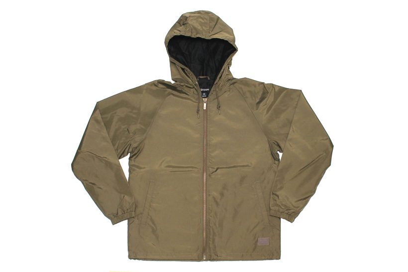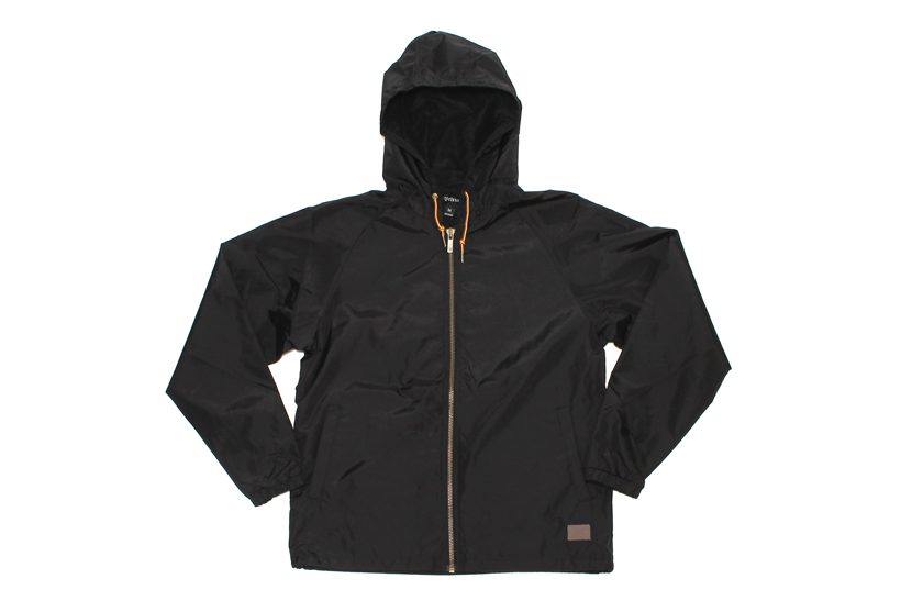 光沢感のあるナイロン素材を使用したラグランスリーブのフードジャケット。撥水コーティングを施した生地やポリエステル製のライニング、ゴールドで主張するフロントジップにレザーパッチなどディテール満載。Claxton Jacket ¥12,960