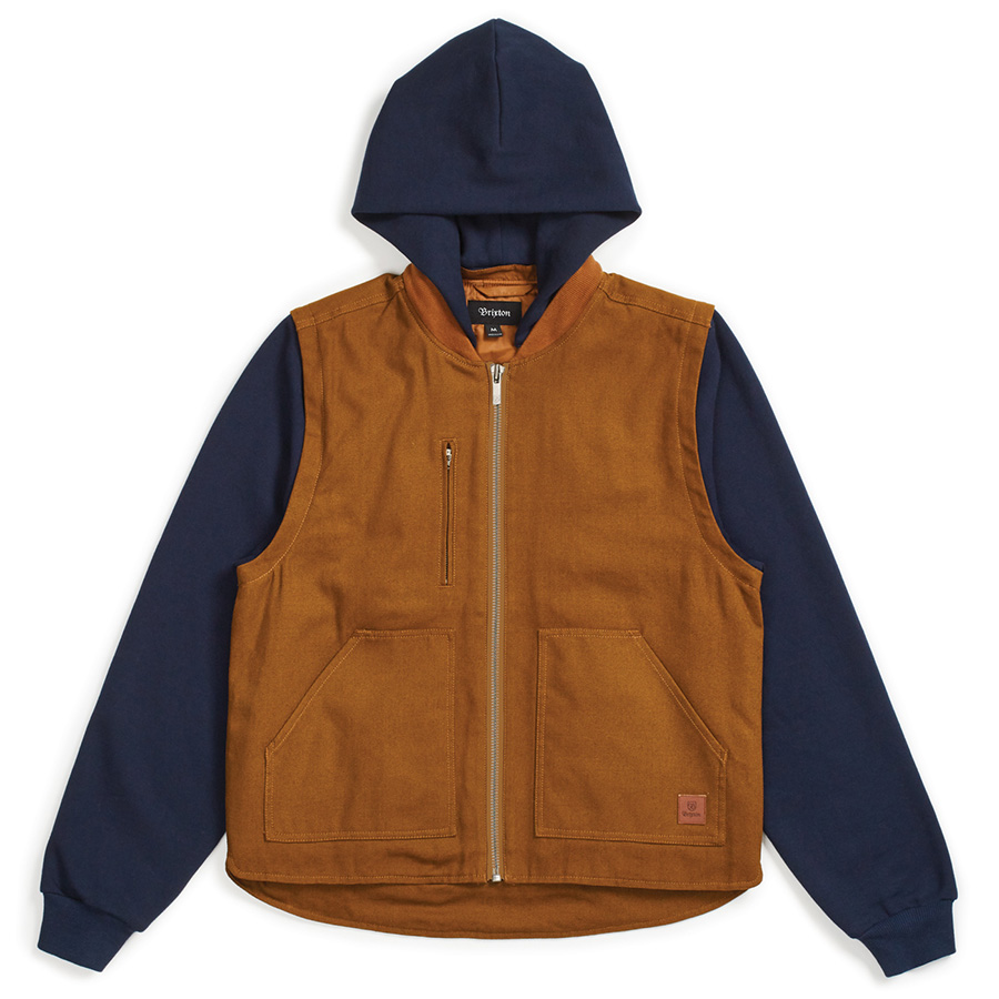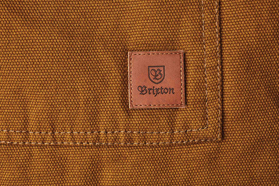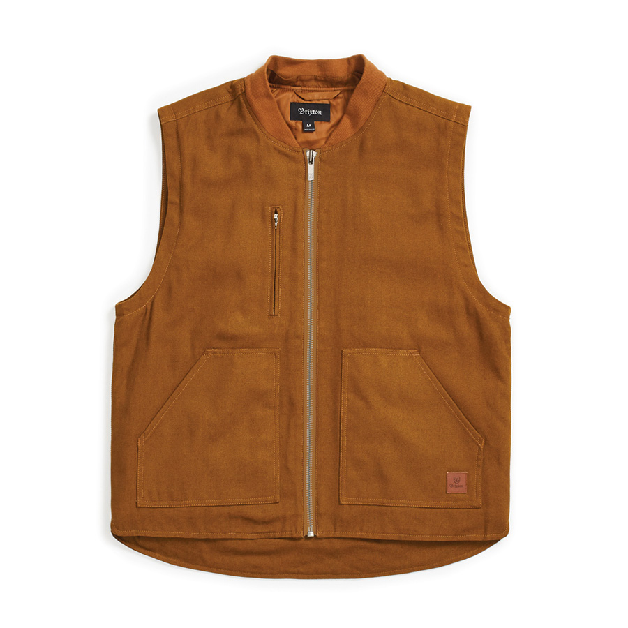 ベスト、ジャケットともにBrixtonのロゴが刻印されたレザーパッチを配置。