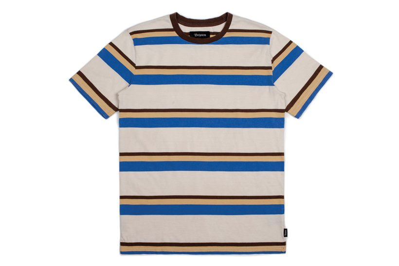 ブラウンを基調としたマルチパターンボーダー柄に採用したブルーがアクセント。Clive Washed SS Knit ¥7,020