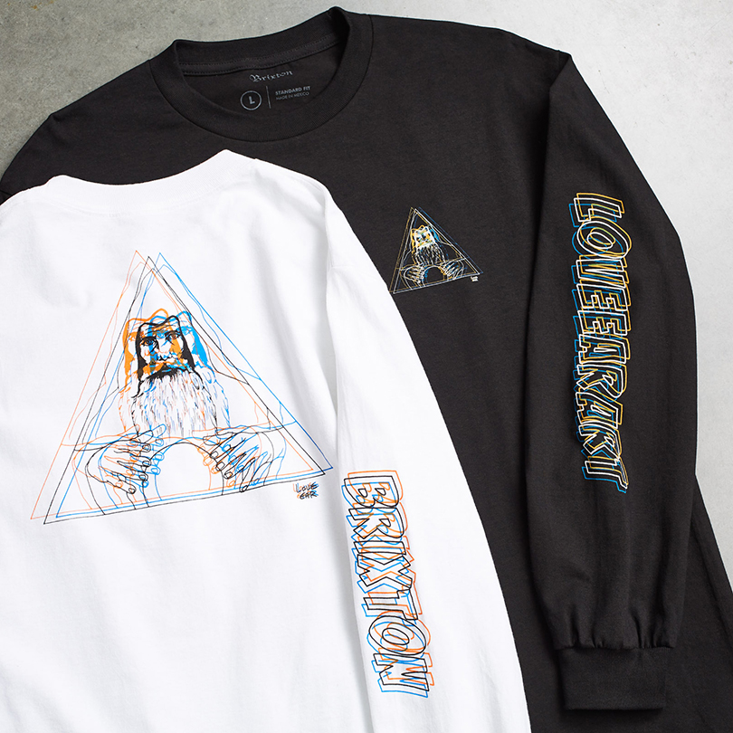 モーターサイクルシーンで活躍するペインターの桂川 弦によるLove Ear ArtとBrixtonのコラボロングスリーブTシャツがリリース。