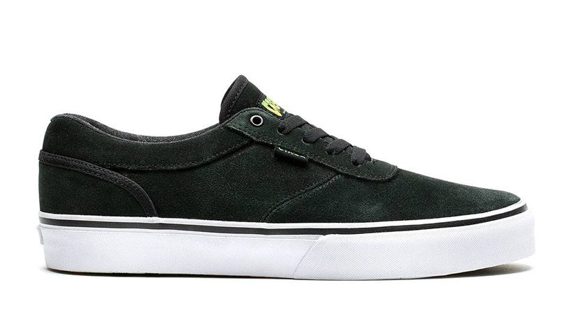 C1RCAのGravetteにグリーンやイエローを用いたアウトソールを採用。ブラックのスエードアッパーの表面が削れるとグリーンの下地が現れるというギミックもグッド!