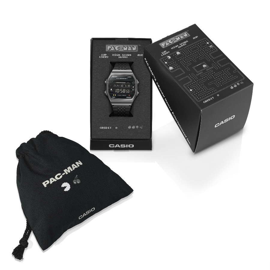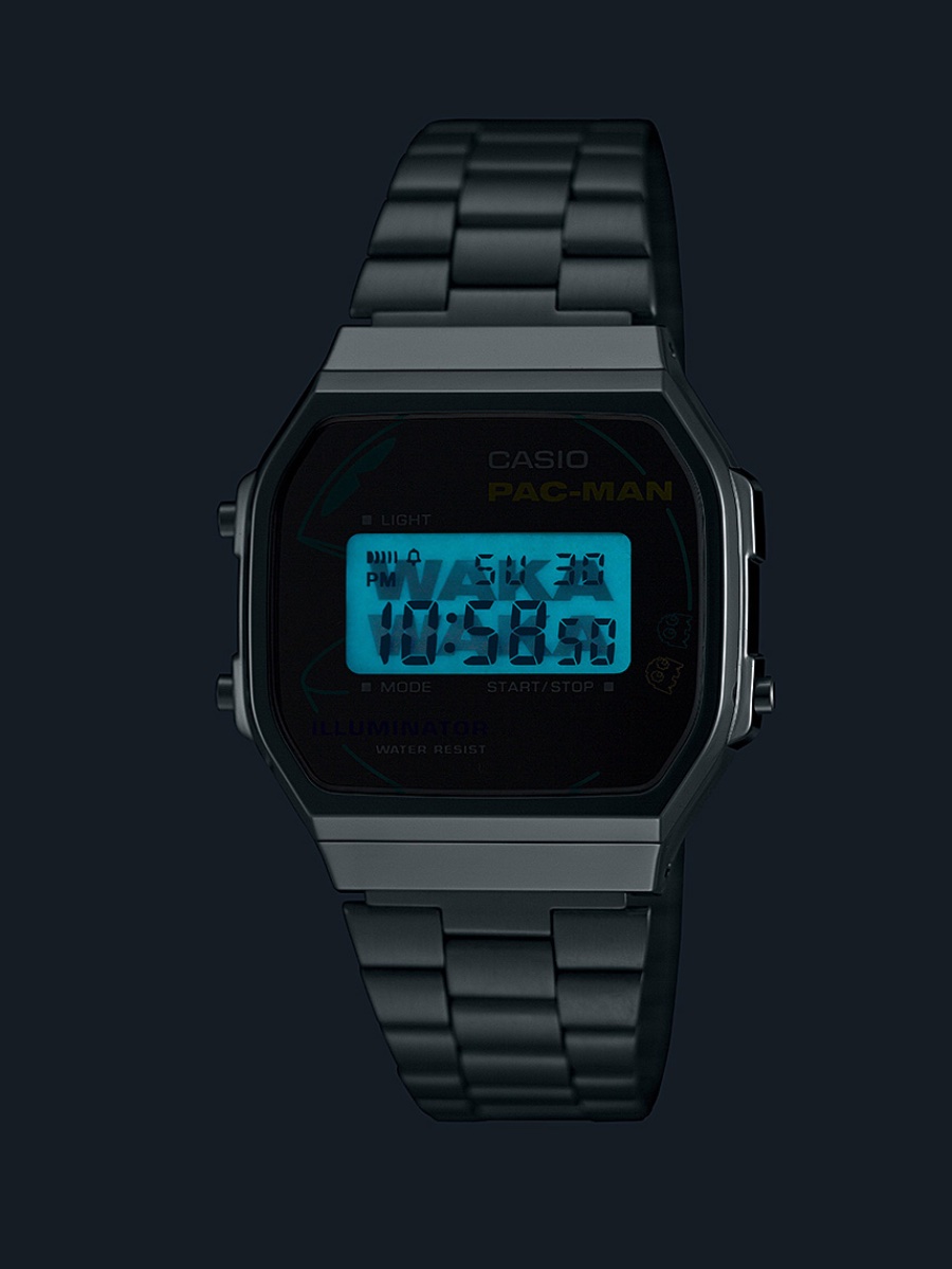 Pac-Manのゴーストとクッキーを食べるWAKAWAKAという音をデザインしたA168WEPC/F-91WPC、時計のフェイスをゲーム画面に見立てたABL-100WEPC/CA-53WPCの4モデルがリリース。