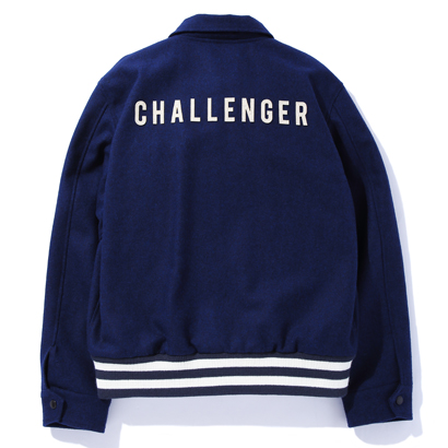 薄手のメルトン生地を使用したジャケット。バックにCHALLENGERのロゴワッペンを採用。LIGHT MELTON JACKET 各色ともに¥40,824