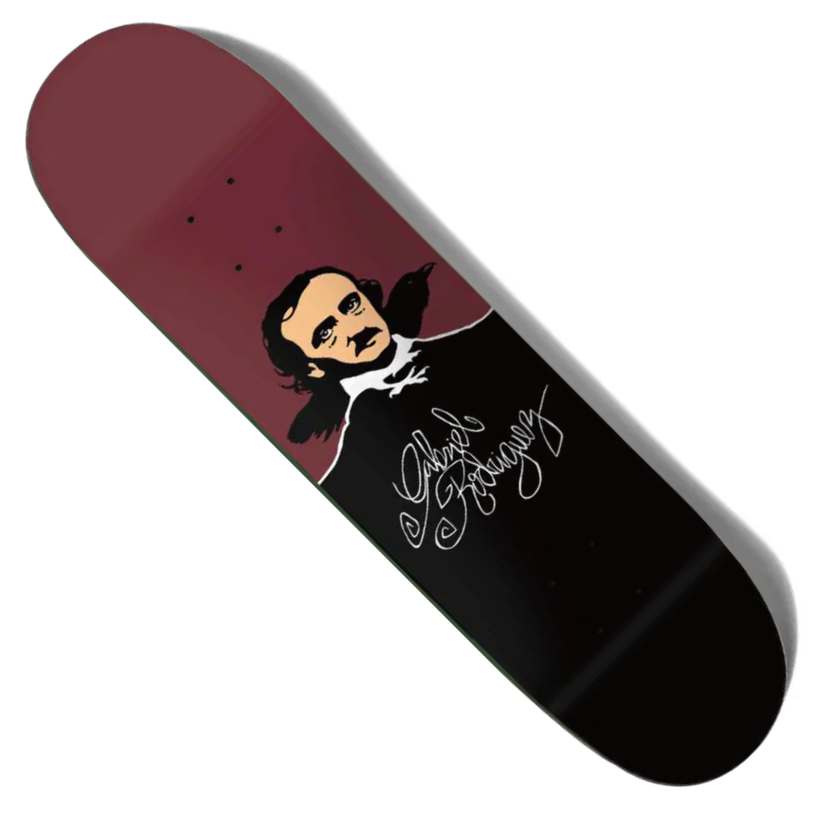 ゲイブリエル・ロドリゲスの’95年販売モデルの復刻。Poe Gabriel Rodriguez(PS Stix)(7.5 × 31)¥16,500、Poe Gabriel Rodriguez(8.25 × 31.875)¥13,750