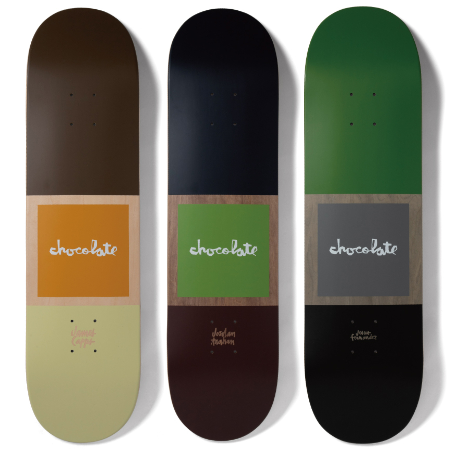 写真左から、OG Squares James Capps Twin Tip(8.25 × 31.875)、OG Squares Jordan Trahan(8 × 31.5)、OG Squares Jesus Fernandez(8.125 × 31.625)。すべて¥13,750