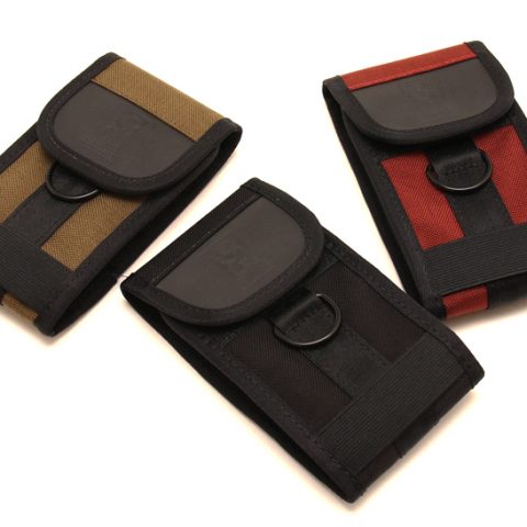 PHONE POUCH。写真左から、Ranger/Black、Black/Black、Brick/Black(W8 H15cm)。すべて¥2,700