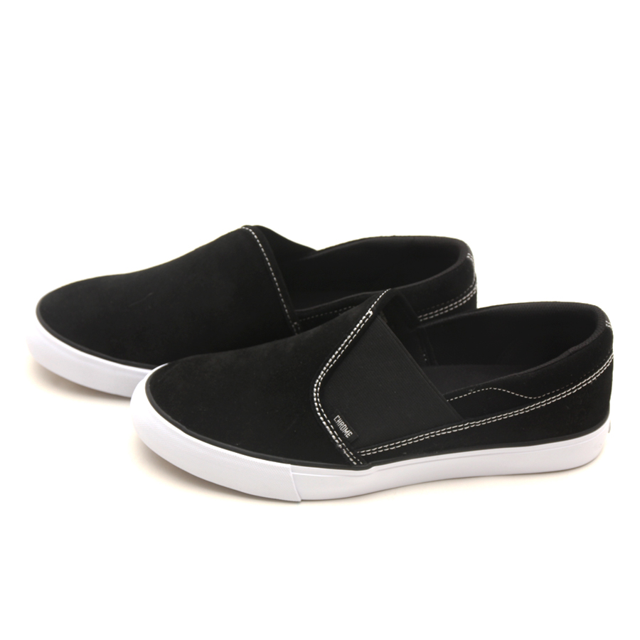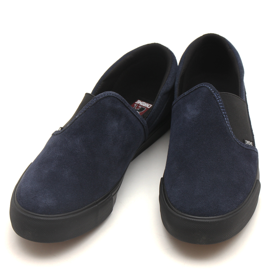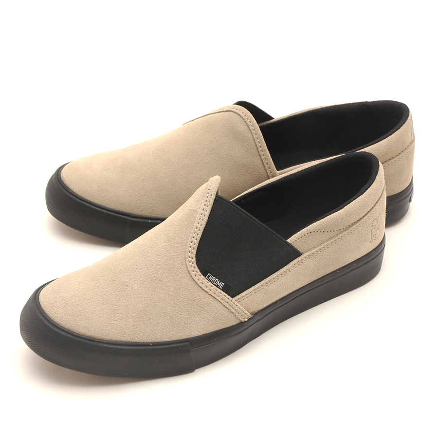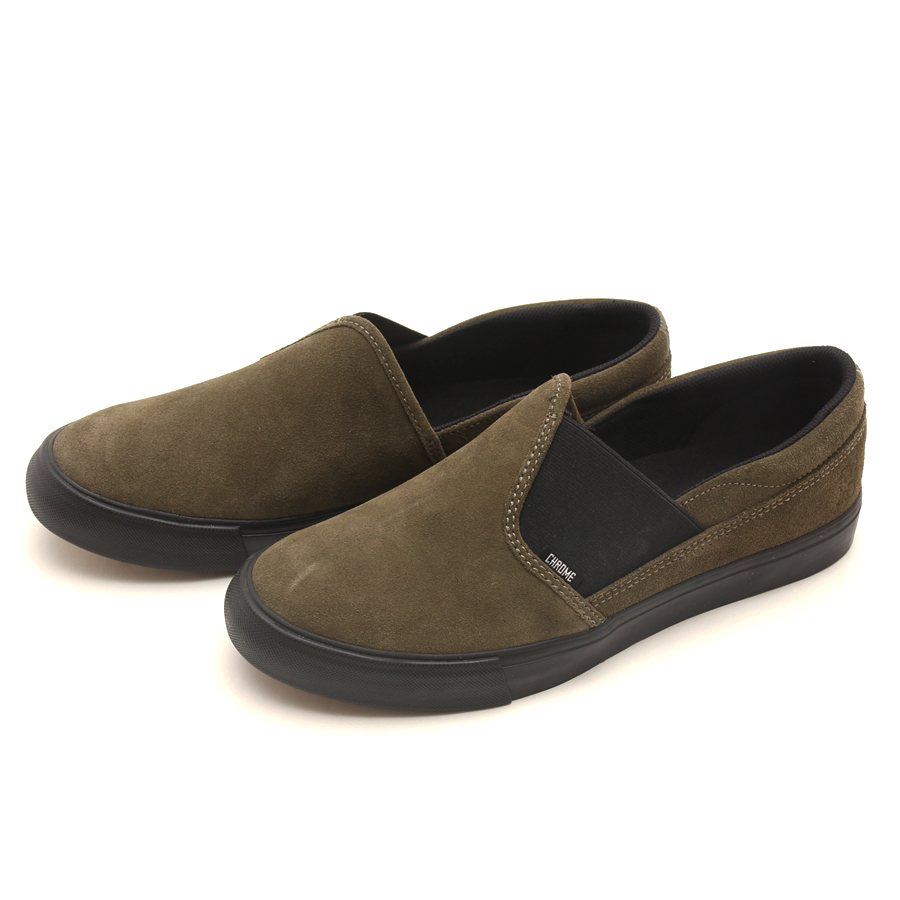 アシンメトリーなデザインが特徴的なCHROMEのスリッポン。履きやすくてフィット感も抜群。DIMA 2.0 SUEDE すべて¥11,000