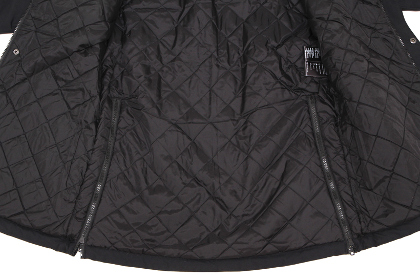 裏地にキルティングを採用することで保温性を向上。サイドにジップが入ることで機動性もアップ。