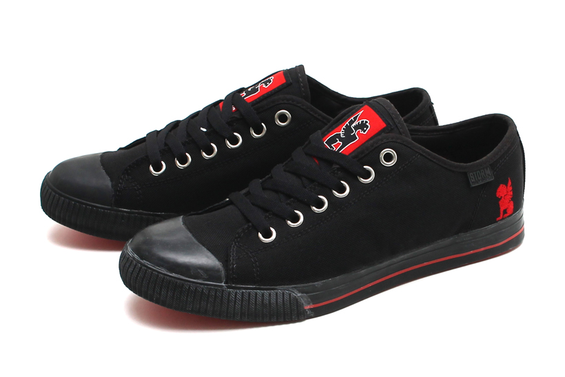 オールブラックのシューズのタンやかかと部分に赤いCHROMEのロゴが主張するデザイン。こちらもアッパーに1000デニールナイロンを採用。STORM KURSK ¥12,960