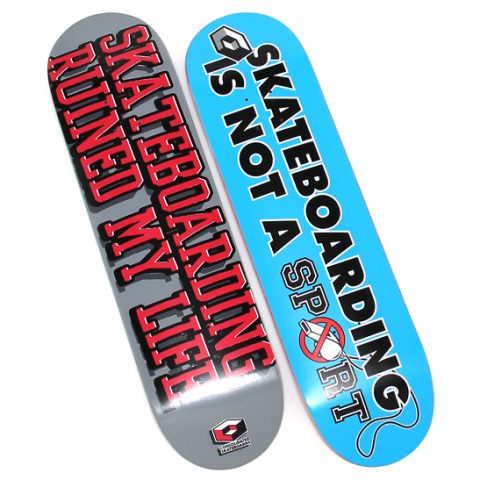 写真左から、Skateboarding Ruined My Life Deck(8.25インチ)、Skateboarding Is Not A Sport(8.1インチ)。ともに¥9,720