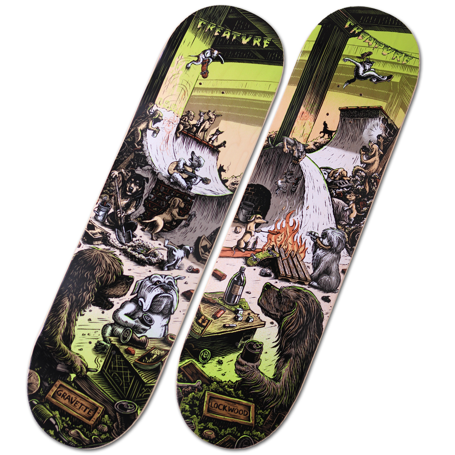 トランジション系を中心に、世界屈指のスキルを誇るスケーターが数多く所属するCreatureの新作デッキ。
