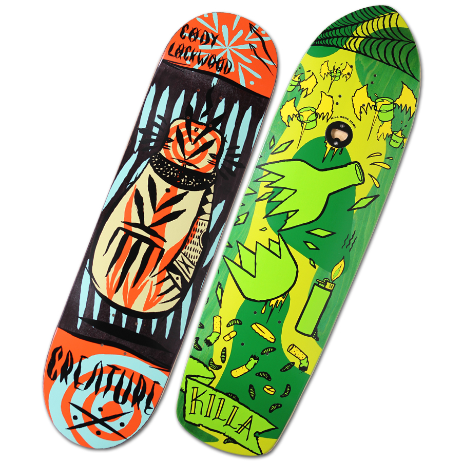 写真左から、Lockwood Token / Orange(8.25インチ)、Brue Killer(8.6インチ)。ともに¥11,000