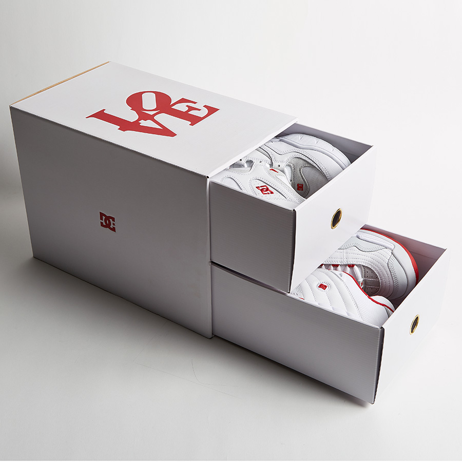 ホワイト&レッドを基調とした清潔感あふれるケイリスとスティービーモデル。ボックスのトップにはLOVEのロゴがプリント。¥25,600