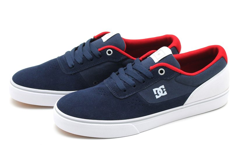 トゥ周りを中心に耐久性に優れたSUPER SUEDE™素材を採用したSWITCH S。ネイビー、レッド、ホワイトを用いたトリコロールカラーがさわやか。¥8,640