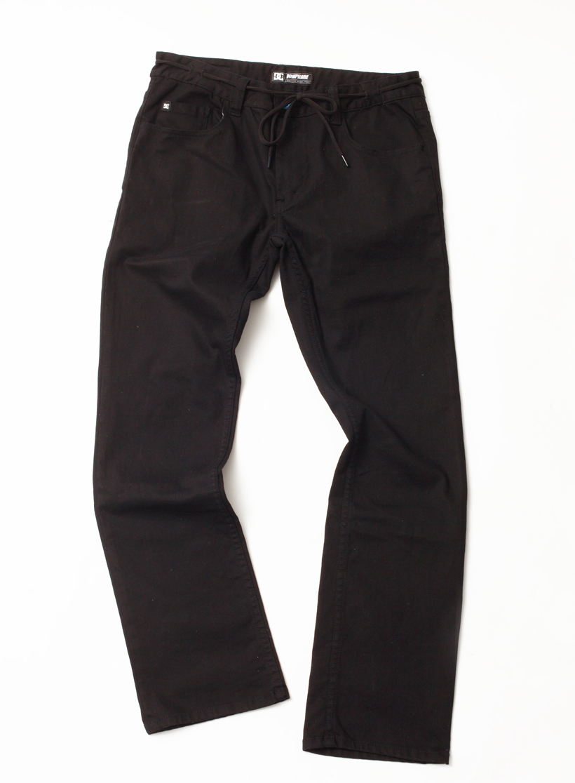 ドンピエールのシグネチャーデニムパンツ。ストレッチ素材を使用した細身のブラックデニムは、シューレースベルトシステムを採用しているのがスケーターにはうれしい。¥11,340