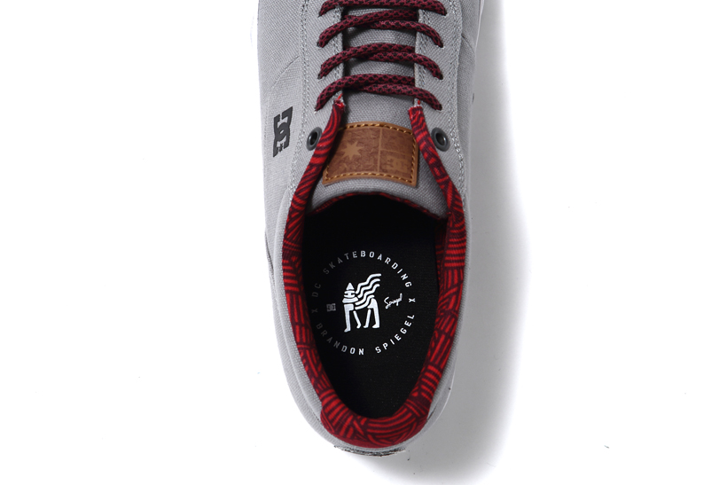 DCの人気モデルであるSwitchをベースに、タン部分のタグやライナーにスピーゲルが手がけるオリジナルのアートワークを採用した1足。