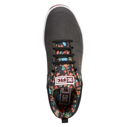 ライニングとタン部分に花柄のテキスタイルを採用することでダークトーン中心のアッパーに彩りを追加。