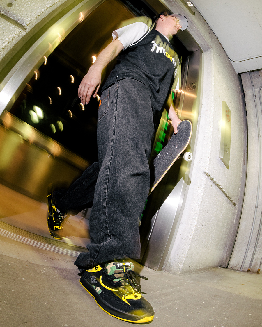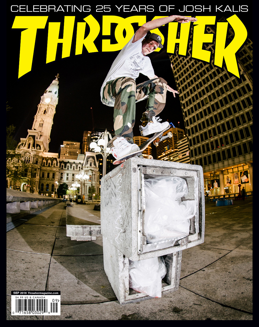 ジョシュ・ケイリスが表紙を飾った2018年のThrasherのロゴ周りを今コラボ用にリデザイン。