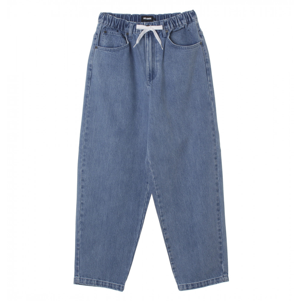 バックポケットの刺しゅうや紙パッチに両ブランドのロゴをフィーチャーしたデニム。ともに¥14,300