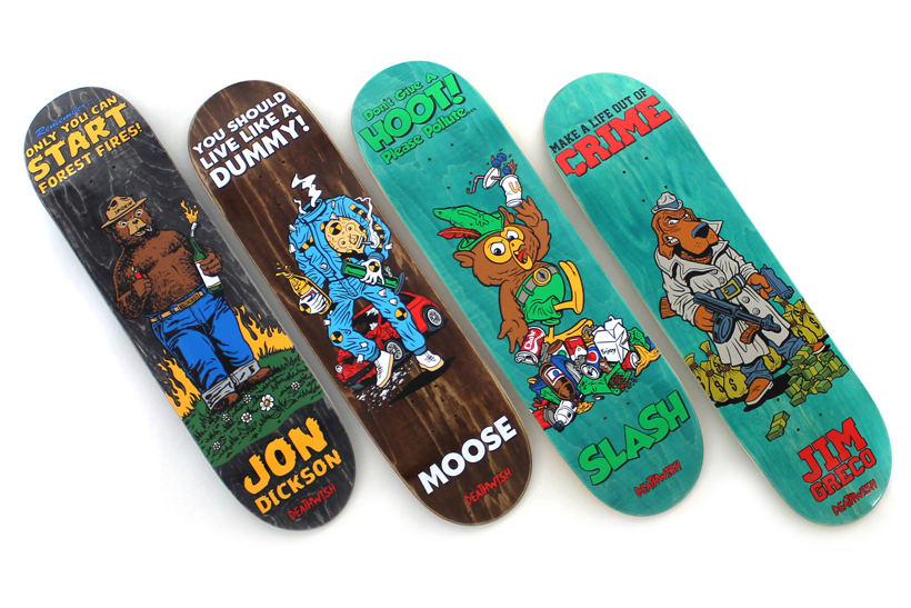 写真左から、ジョン・ディクソン(8×31.5)、ムース(8.125×31.5)、スラッシュ(8.38×31.75)、ジム・グレコ(8.25×31.5)。すべて¥11,880