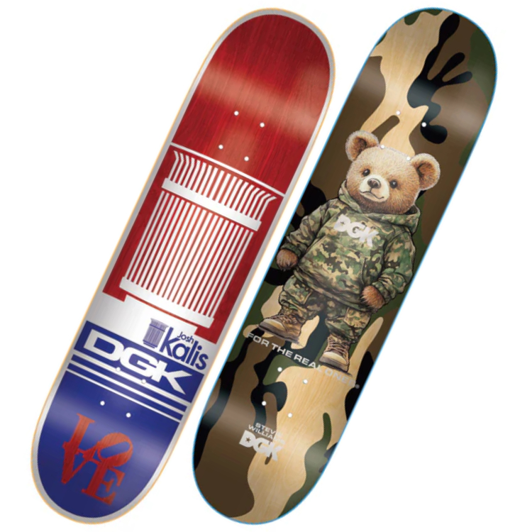 写真左から、Heritage Josh Kalis(8.06 × 31.848)、F.T.R.O Stevie Williams(7.9 × 31.35 / 8.1 × 31.848)。ともに¥15,400
