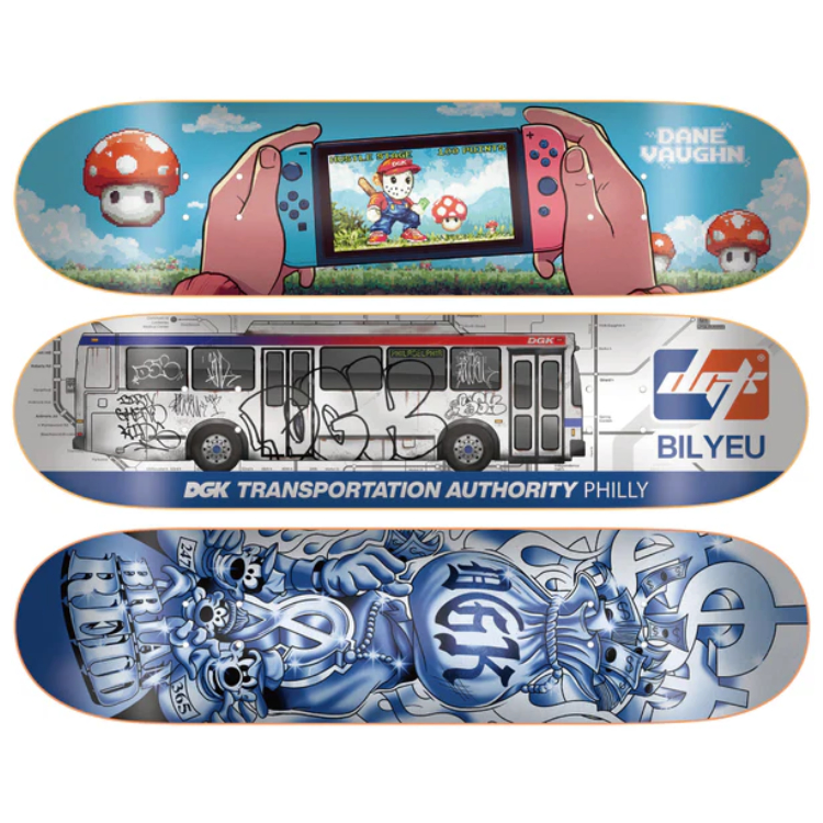 写真上から、One Player Dane Vaughn(8 × 31.848)、Transportation Kevin Bilyeu(7.8 × 31.296 / 8.06 × 31.296)、Money Bag Brain Raid(7.75 × 31.5)。すべて¥15,400