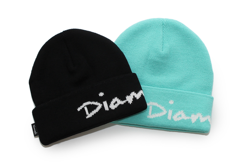 Diamondのロゴマークが織りで表現されたニットキャップはブラックとダイヤモンドブルーの2色展開。各色ともに¥5,400