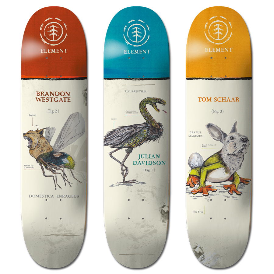 写真左から、Fosシリーズのグレイソン・フレッチャー(7.6インチ)、トム・シャー(7.75インチ)、ニック・ガルシア(8インチ)、Totem Custom(8.5インチ)。すべて¥9,180