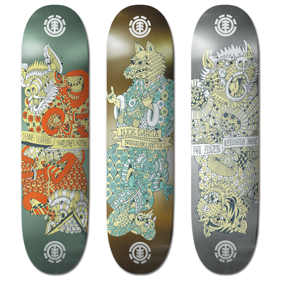 写真左から、Siamseシリーズのデニス・デュラント/アレックス・ロートン(8インチ)、ニック・ガルシア/ジュリアン・デイビッドソン(7.75インチ)、フィル・ズァイスン/ヤルネ・バーブラゲン(8インチ)。すべて¥11,880