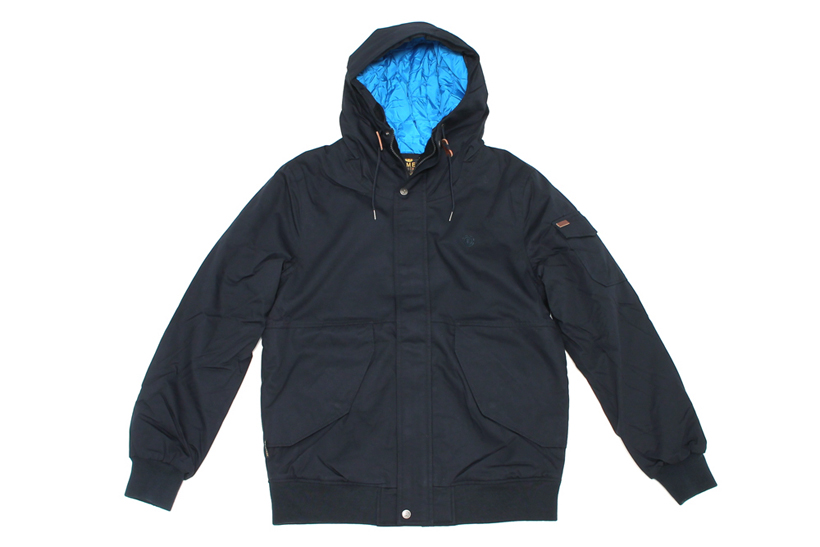 落ち着いたネイビーのカラーリングを採用したコットンフードジャケット。フードの内側には目の覚めるような鮮やかなブルーを使用している。Edkin ¥22,680