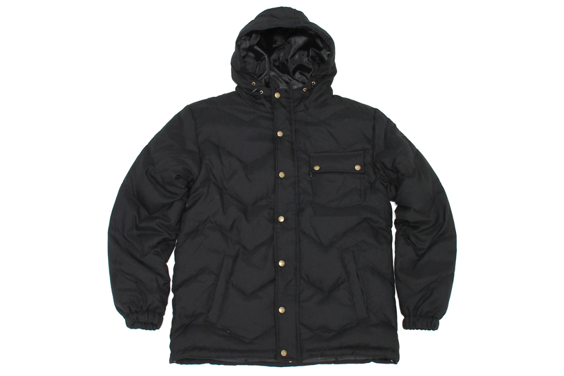 オールブラックのボディに真鍮製のメタルボタンが主張するダウンジャケット。山型のステッチと左胸のポケットがアクセント。ヨーロッパ産のホワイトダックダウンを使用し、軽量で優れた保温性が魅力。 Down ¥31,320