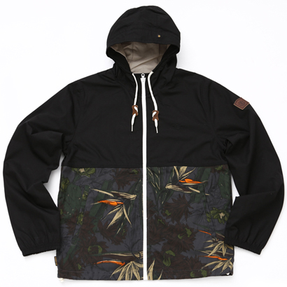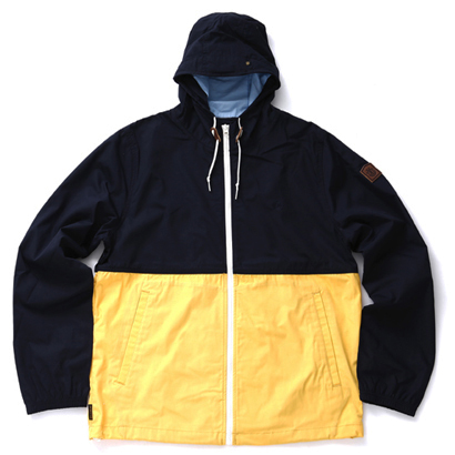 胸から下をイエローやリゾート柄に切り替えることで存在感をプラスしたフードジャケット。各色ともに¥14,040