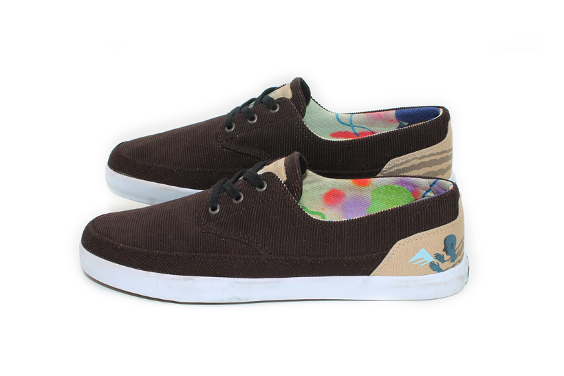 アッパーにコーデュロイ生地を用いたシューズに、エド・テンプルトンが手を加えることでアーティスティックな仕上がりに。