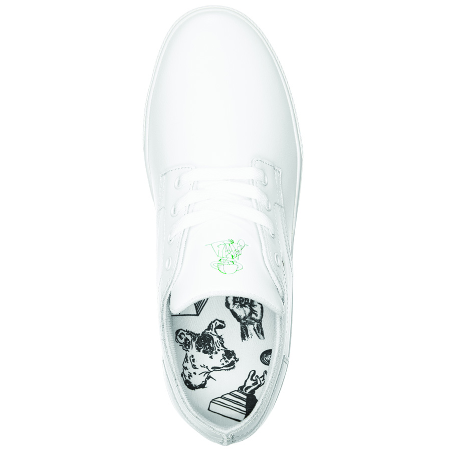 ホワイトのレザーアッパーに落書きが映える。Spanky G6 ¥12,980