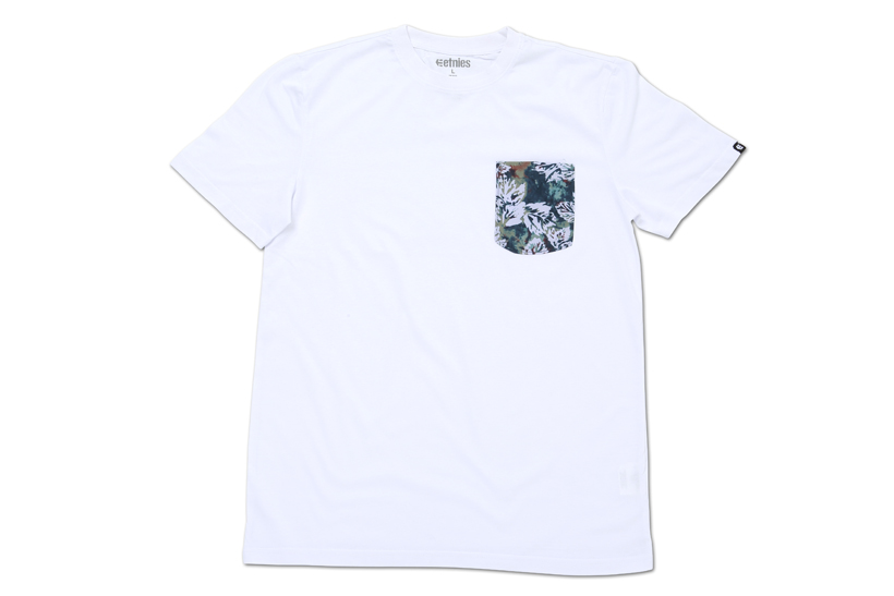 胸ポケット部分にリゾート柄の生地を使用することでアクセントを持たせた胸ポケットTEE。¥3,888