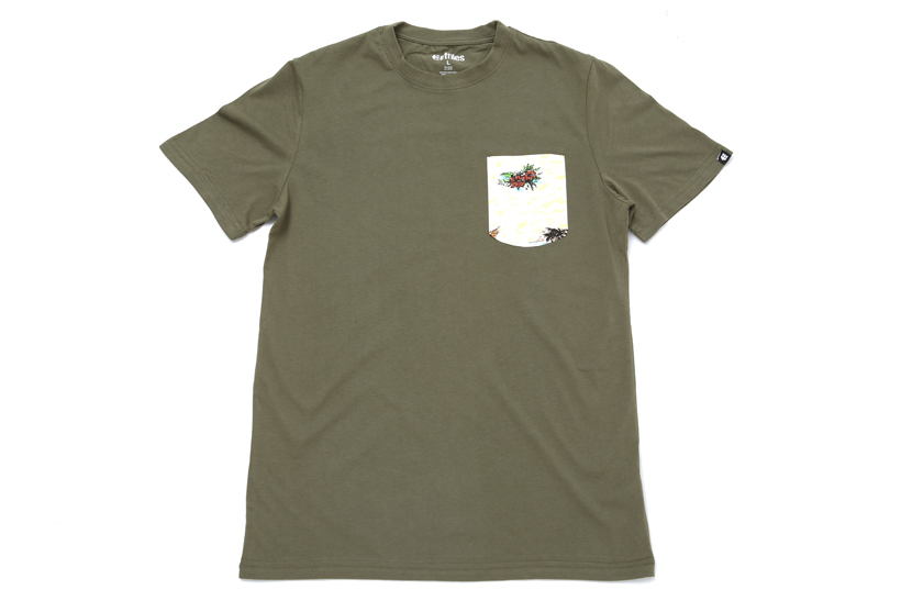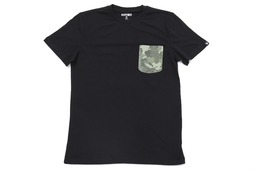 オリジナルの迷彩柄の胸ポケットがブラックのボディに存在感を主張するTEE。¥3,888