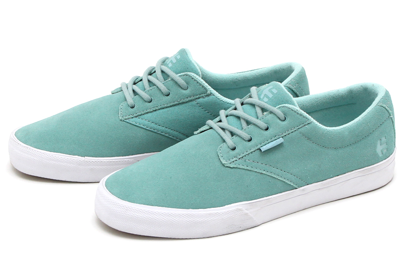 青と緑の中間色の配色がさわやか。細めの1枚皮のアッパーは素足に近い感覚を得られるので調子いい。Jameson Vulc ¥10,584