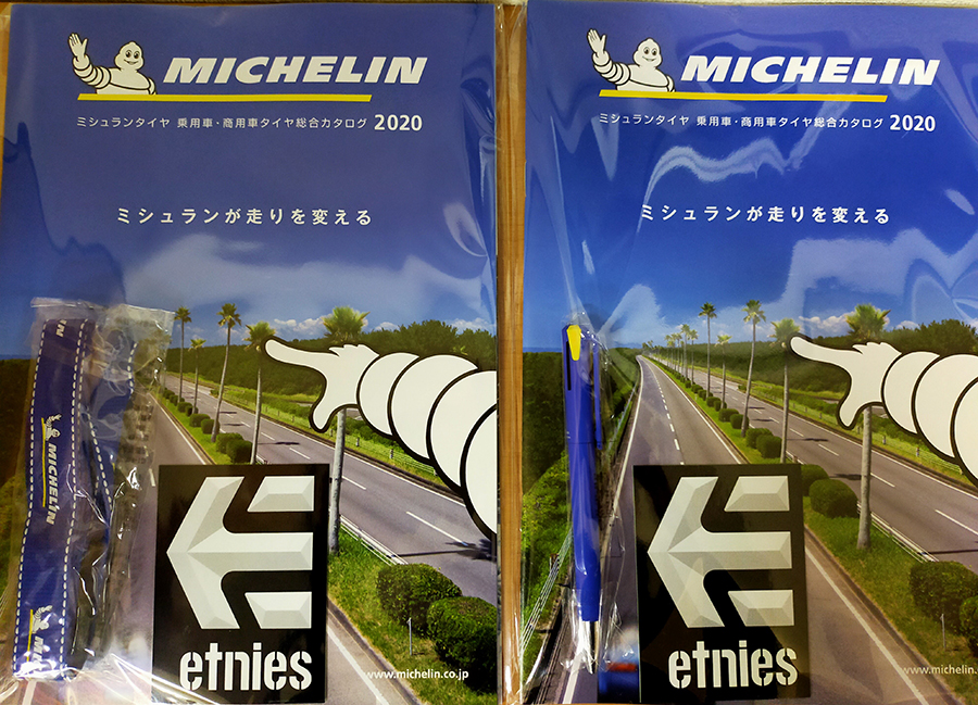 購入特典としてタイヤカタログ入りのMichelin特製ボールペンもしくはネックホルダーのいずれかが付属。