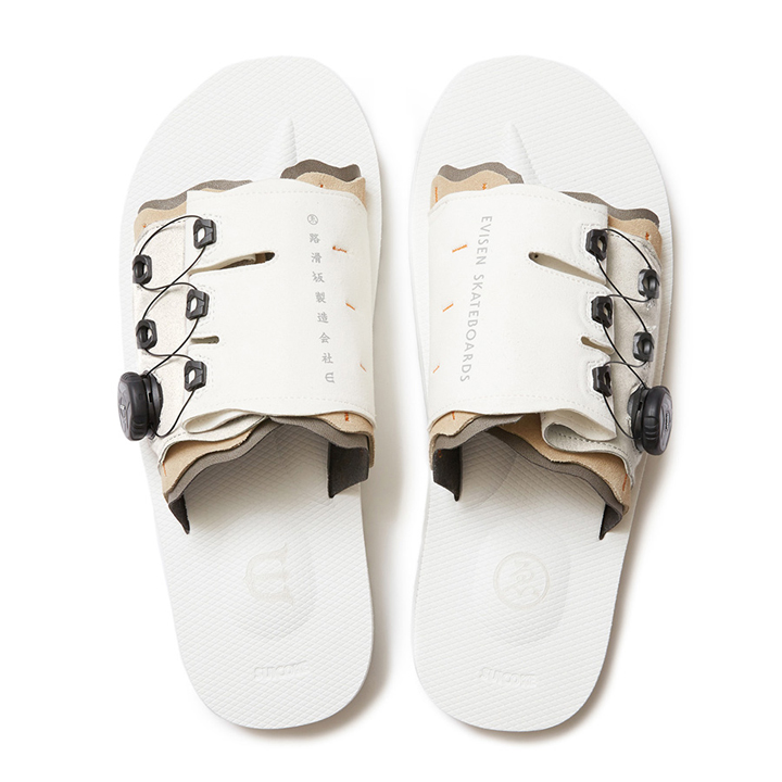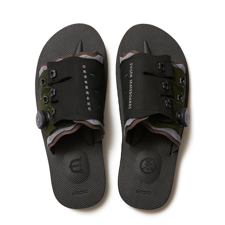 サンダルでは、Evisenが初となるSuicokeオリジナルVibram®社製ARCTIC GRIP "Skag 2Pieces”ソールに加え、クッション性に優れたSuicokeオリジナルフットベッドを用いるなど機能性も抜群。