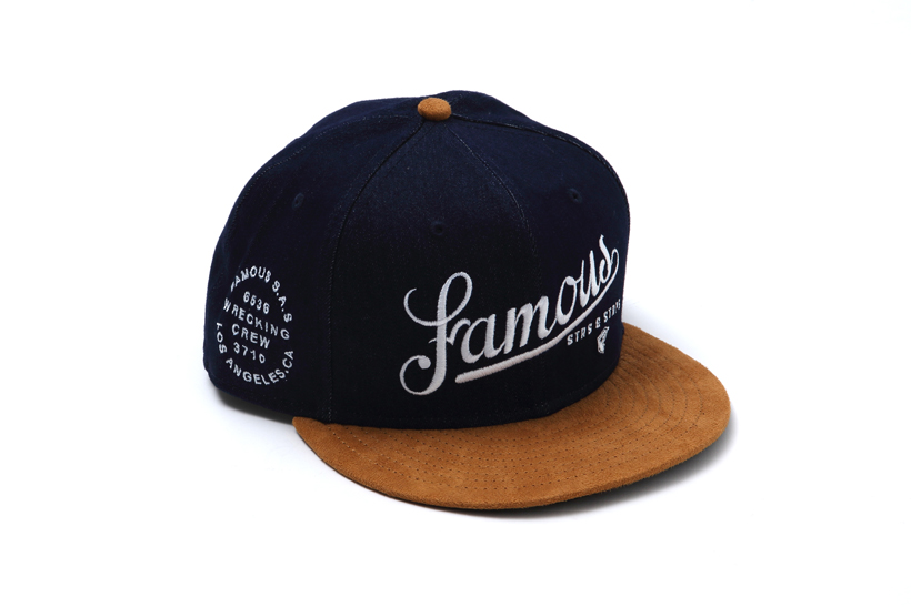 フロント、そしてサイドに刺しゅうが施されたデニム製のスナップバックキャップ。