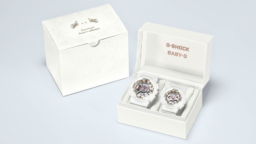 デジタルアナログコンビネーションモデルであるG-SHOCKのGA-110、BABY-GのBA-110をベースに、「相思相愛」の花言葉を持つホワイトローズの意匠を各部に採用。