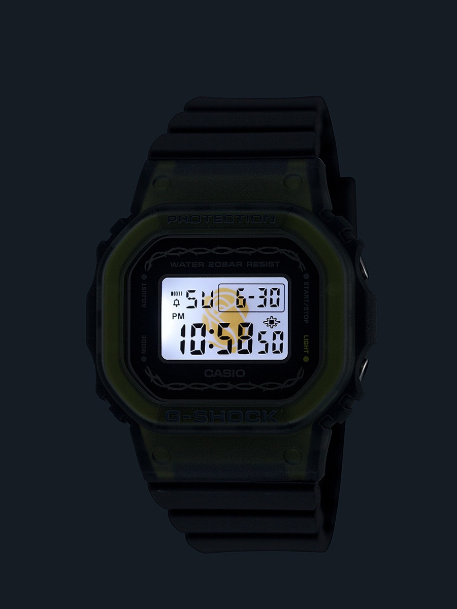 青バラをカラーテーマに花言葉の「奇跡」や「夢は叶う」という意味を表現。G-SHOCK DW-5600RS ¥15,400