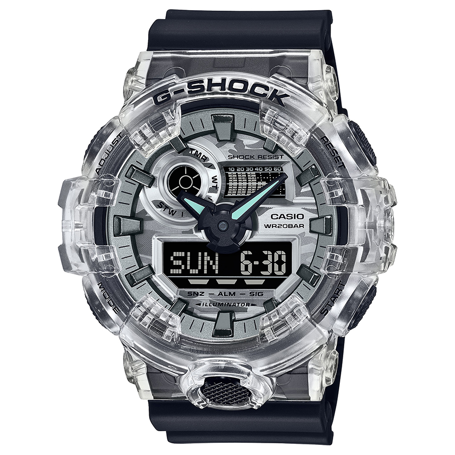 G-SHOCKから、文字版にカモ柄を施しスケルトンベゼルを採用したカモフラージュスケルトンモデルをご紹介。